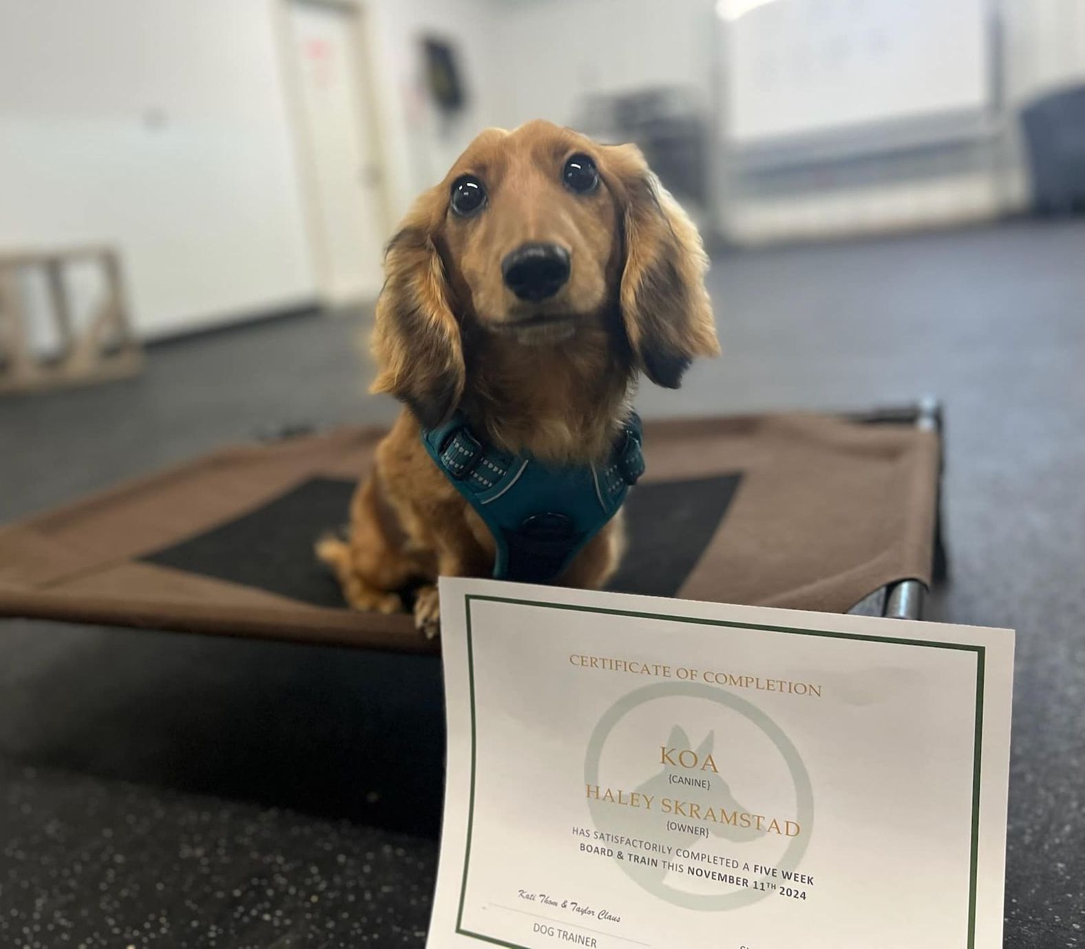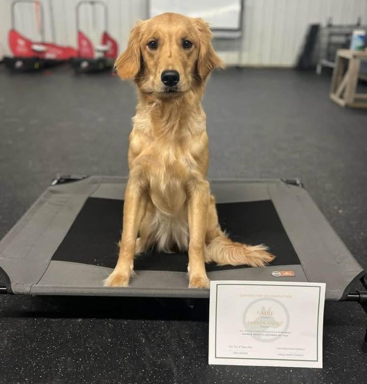 All Board + Train client owners will come in for weekly training sessions to view their dog's progress and to receive educational training themselves as well. That way, you are able to maintain your dog's training back at home! Upon completion of the program your dog will not only be able to perform all commands learned in the comfort of your own home, but will also be able to perform them in public settings as well. While your dog is in our care, they will be exercised via our dock diving pool and/or our Aqua Paws Jr. Hydro Treadmill (with veterinarian clearance). On their go home day they'll get pampered with a relaxing bath, blowout, brush and nail trim